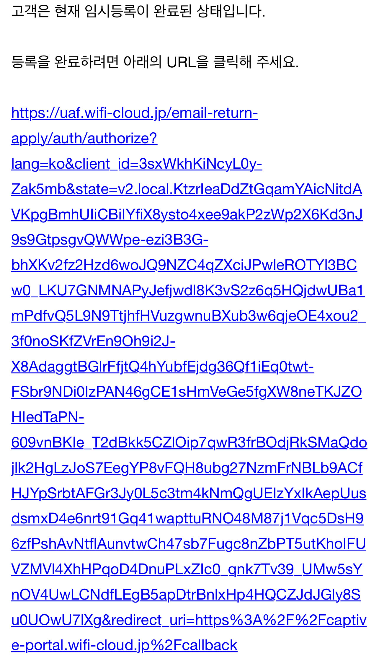 메일 이용등록을 한 뒤 10분정도는 와이파이 이용이 가능하여 메일을 받을수가 있습니다.