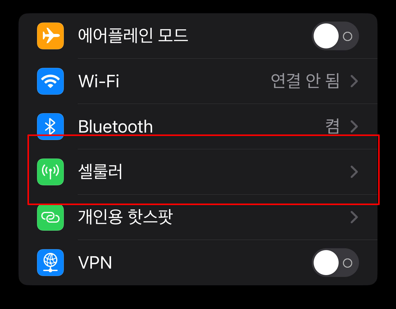 셀룰러 데이터 추가: '셀룰러' 또는 '모바일 데이터' 메뉴로 이동한 후 '셀룰러 요금제 추가'를 선택합니다.