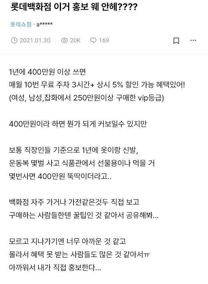 1년에 400만원이니깐 크게 부담도 안되고~ 백화점 자주 가시는분들은 꼭 알아두세요!