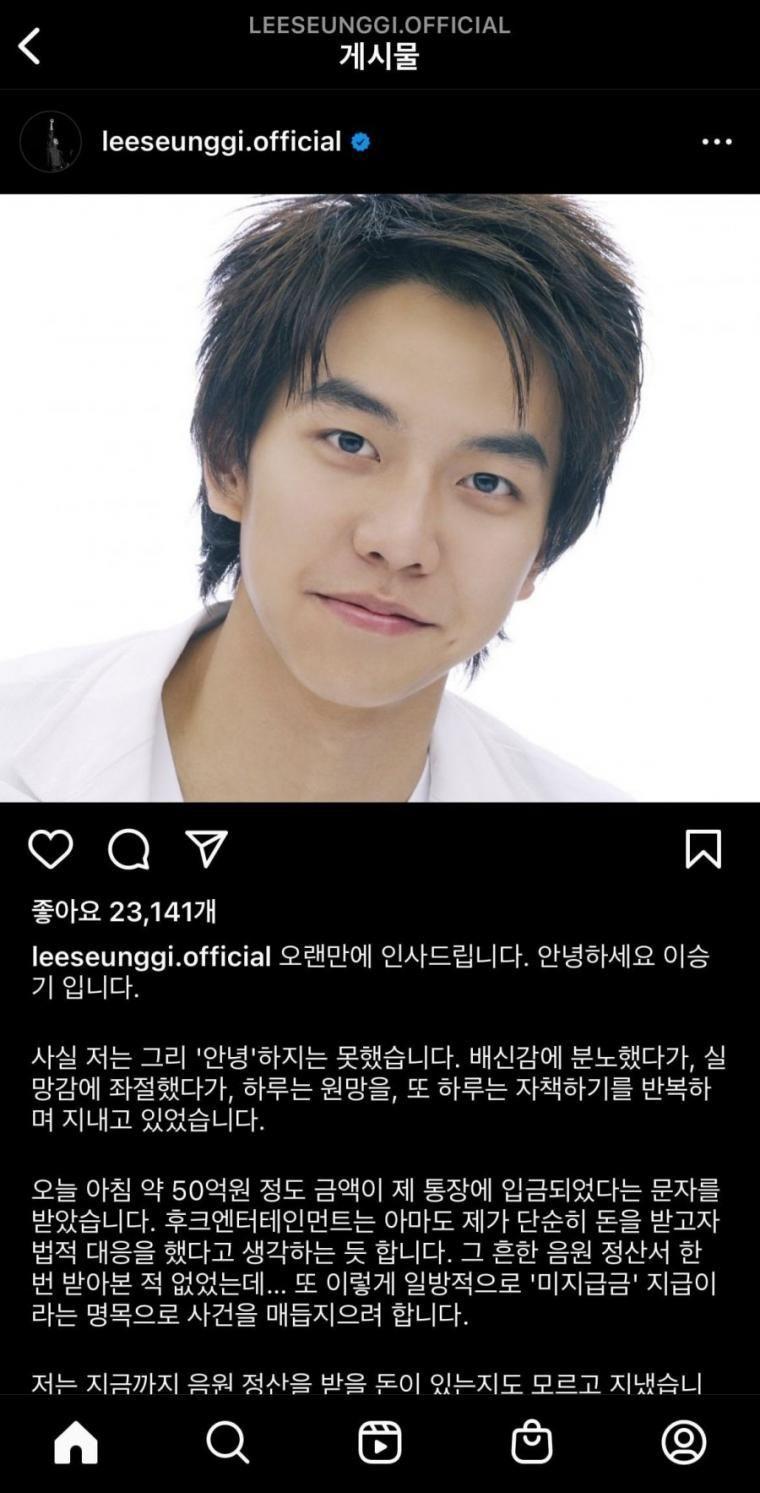 3. 후크는 단지 이승기가 돈을 받고자 법적 대응을 했다고 하지만 이승기는 그게 문제가 아니다.