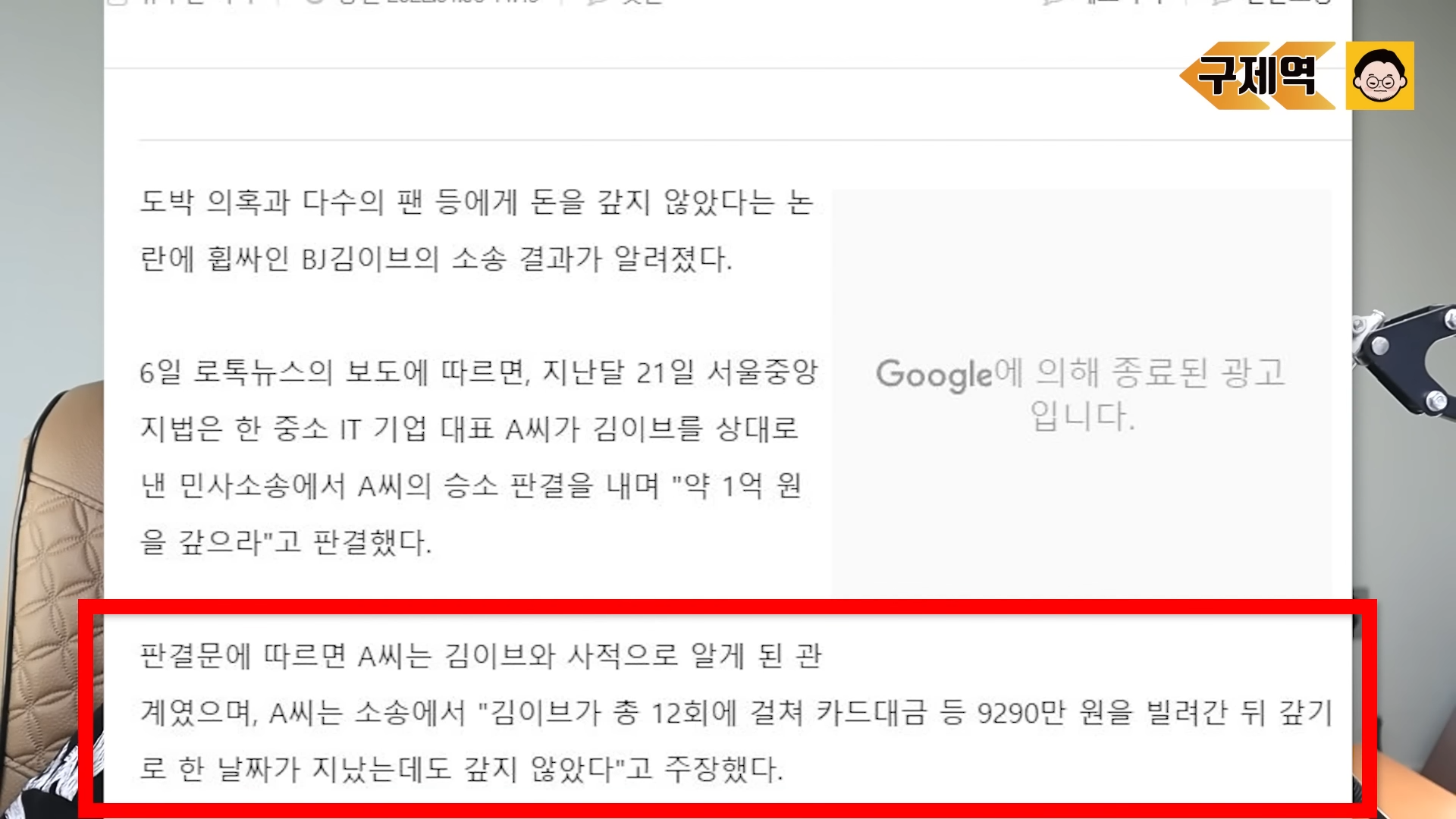 또한 구속된 bj피해금액 9290만원, 김이브 채무 9290만원, 구속된 bj 세금 명목 채무, 김이브 세브 명목 채무라고 말하며 이 모든게 우연의 일치라기엔 너무 딱딱  맞아떨어지지 않냐고 방송에 공개를 한 구제역.