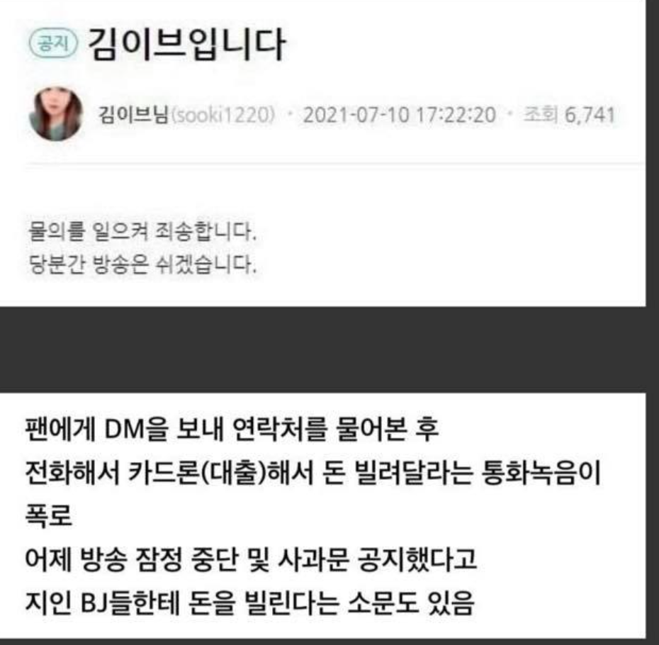 1세대 여캠 김이브 구속! 돈 안갚아서 징역 10개월! 이유는?