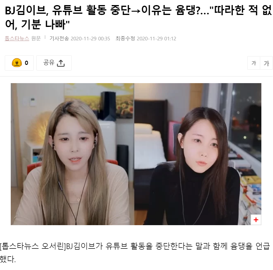 김이브와 불화가 생긴 이유는 윰댕이 김이브에게 전화 통화로 폭언을 듣게 되었고 이 사실을 방송중 공개가 되면서 퍼지게 된 사건이죠.