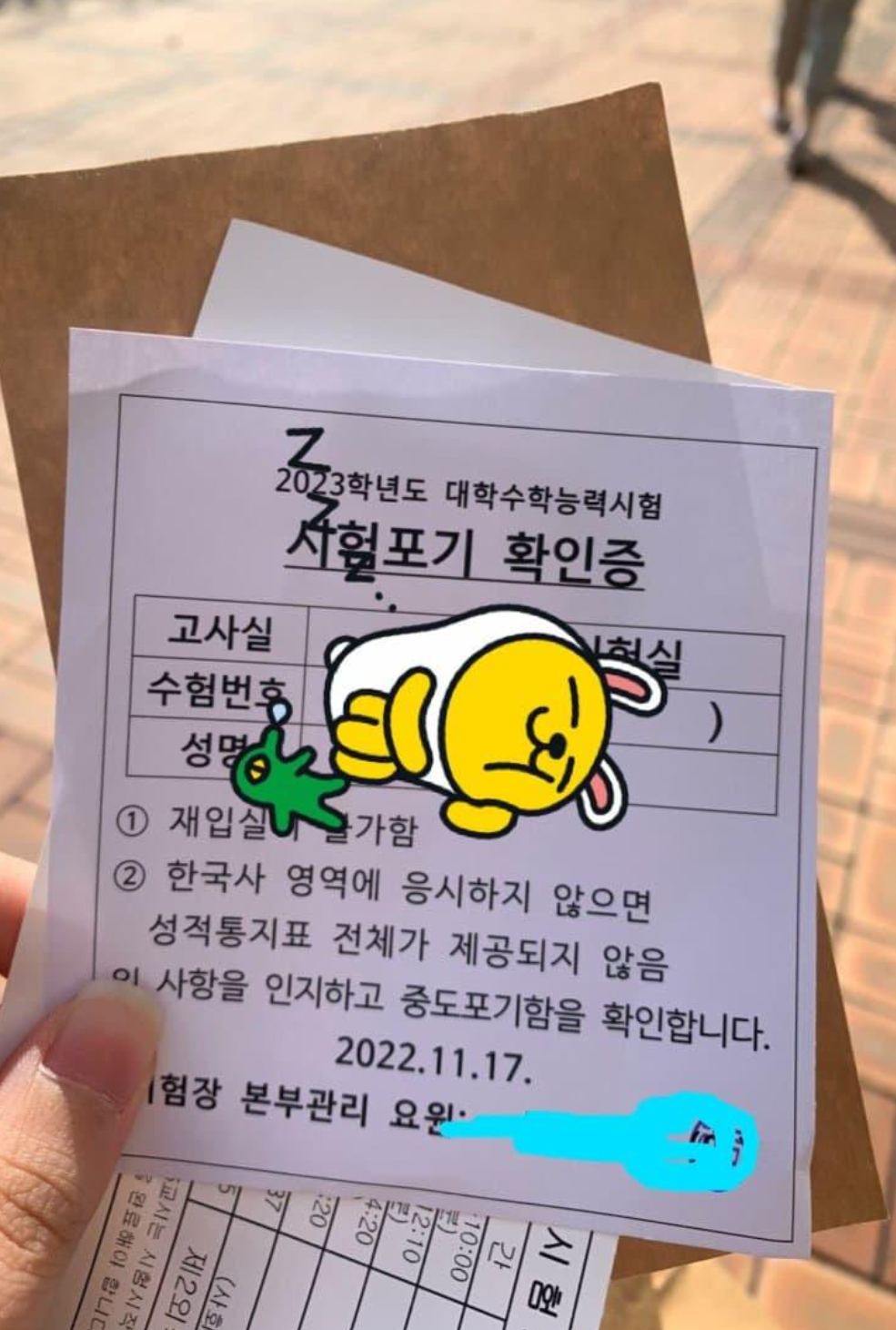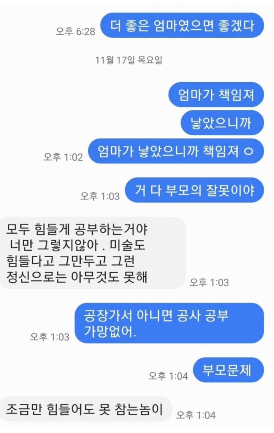 수능 탈주후 엄마에게 문자를 했다는 글쓴이..