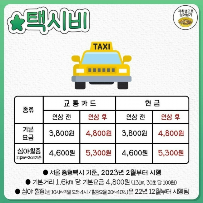 택시비 기본요금 3800원에서 4800원 인상