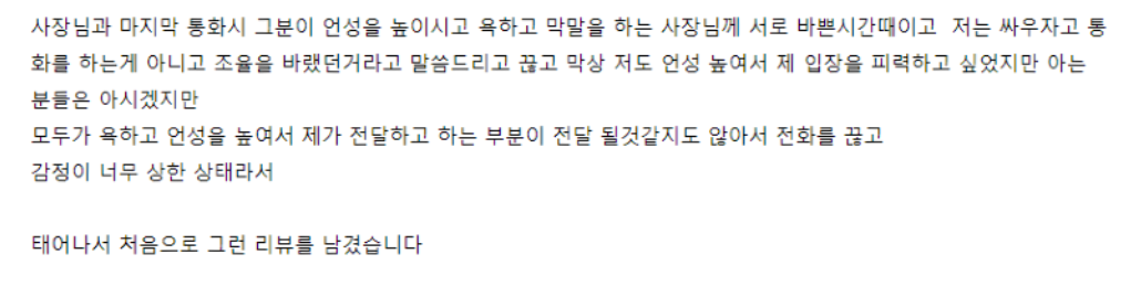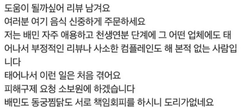 이 상황을 아는 분이 사태가 이리 커지니 왜 미리 리뷰에 사장님처럼 구체적으로 적지 않았냐고 물으셨는데