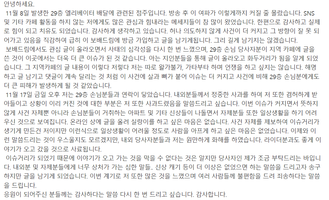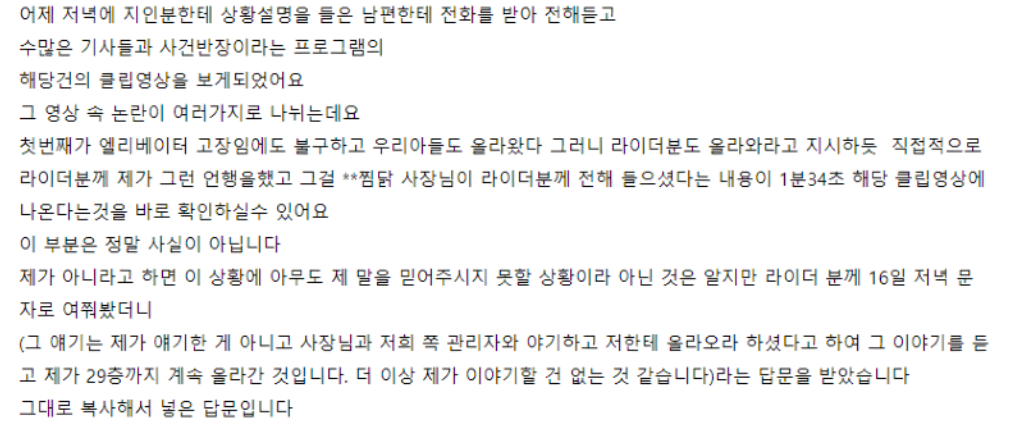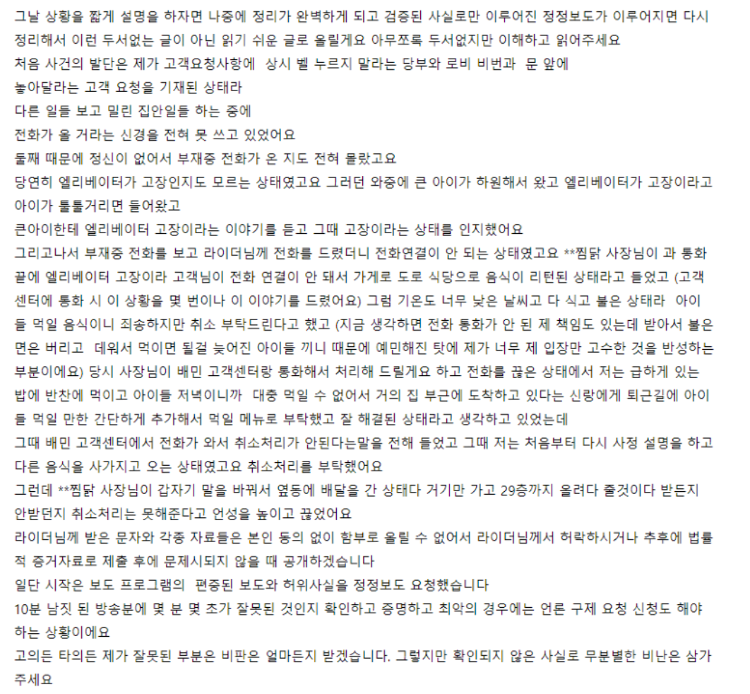 아무튼 29층 배달 갑질 했던 당사자가 해명글을 올렸다고 합니다.