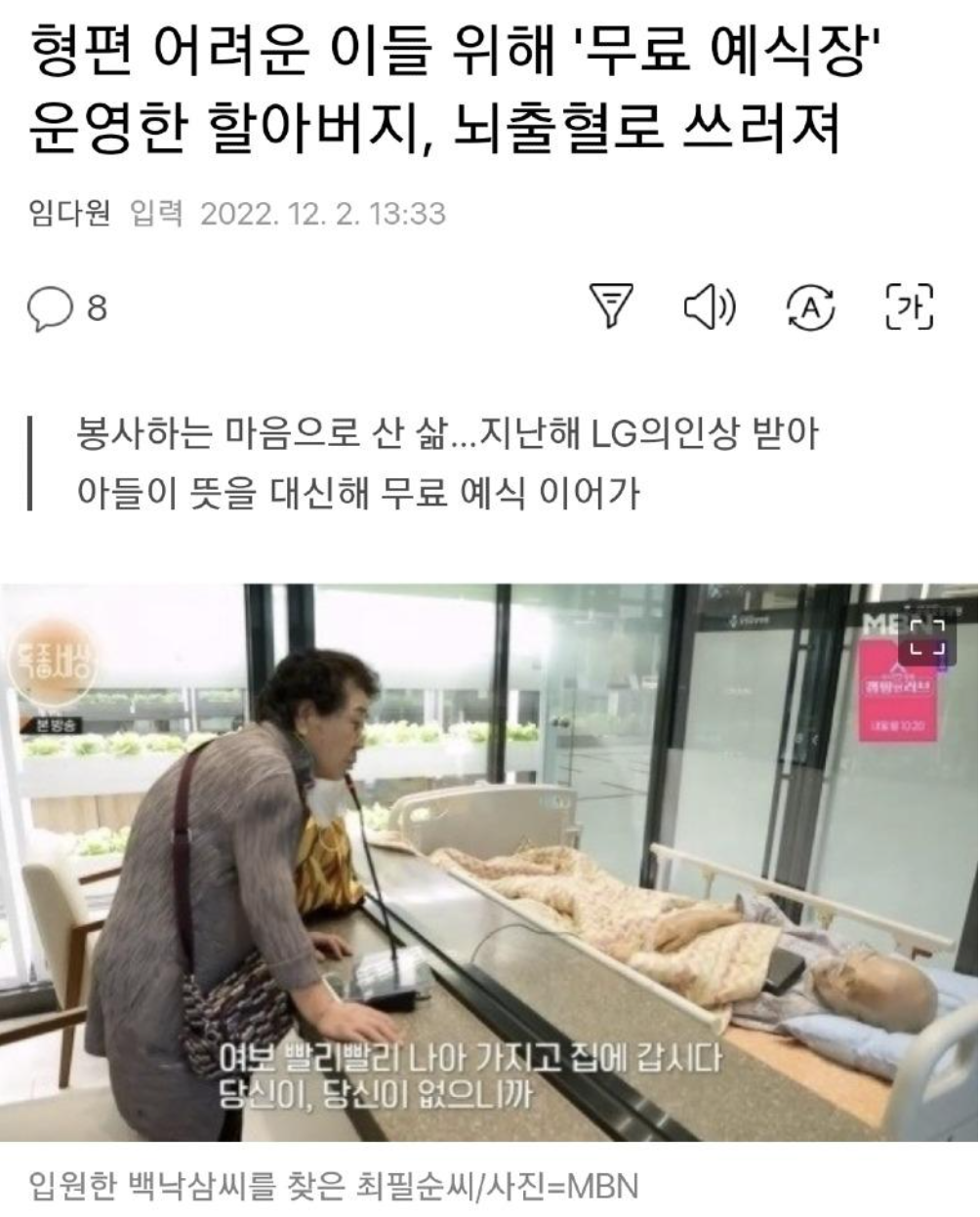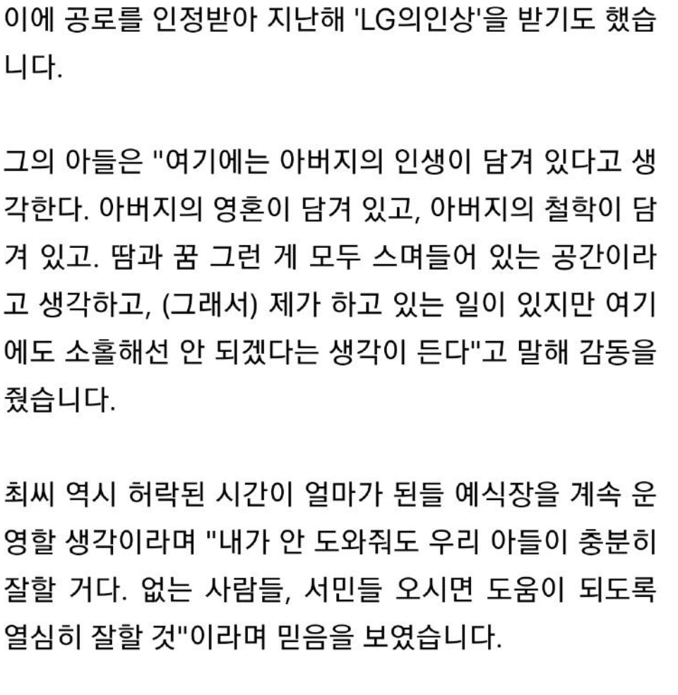 형편이 어려운 이를 위해 무료 예식장을 운영하셨던 분이신데...