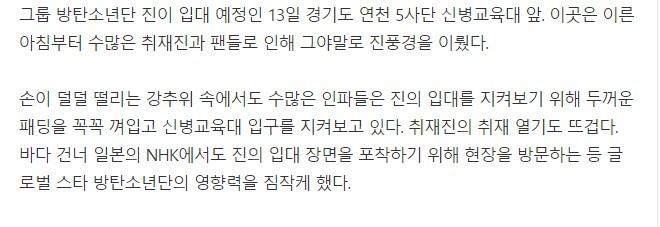 BTS 진 군입대 현장! 미국,일본,중국 취재진 클라스