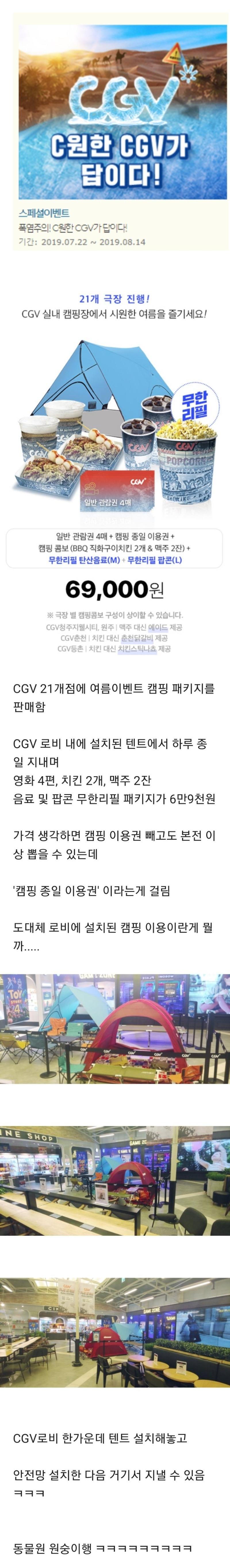 CGV 역대급 이벤트! C원한 CGV에서 실내 캠핑장을!!