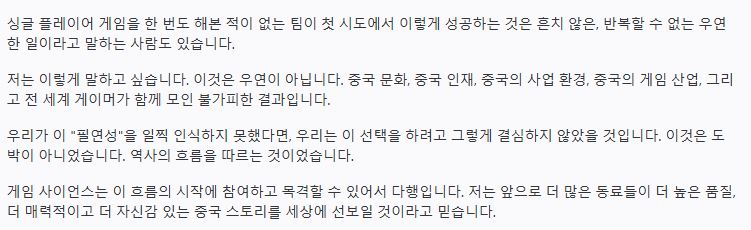 중국인 게이머들은 자신들이 적극적으로 지지하던 *‘검은신화 오공’*이 GOTY를 수상하지 못하자 격렬한 반응을 보였습니다. 특히 시상식에서 발더스게이트3를 만든 라리안 스튜디오 CEO의 수상 발표 발언이 중국 커뮤니티에서 와전되며 상황이 악화됐습니다.