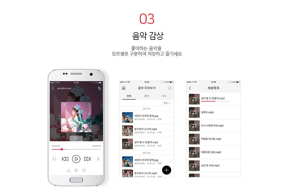 3. 음악 재생 기능 (기존 유클라우드와 비슷)
