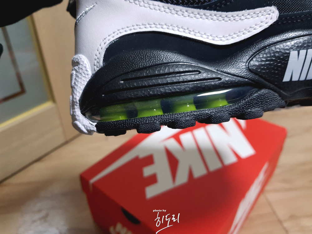 - 특징: 검흰 스웨이드, 벨크로 스트랩, 맥스 에어 쿠션
