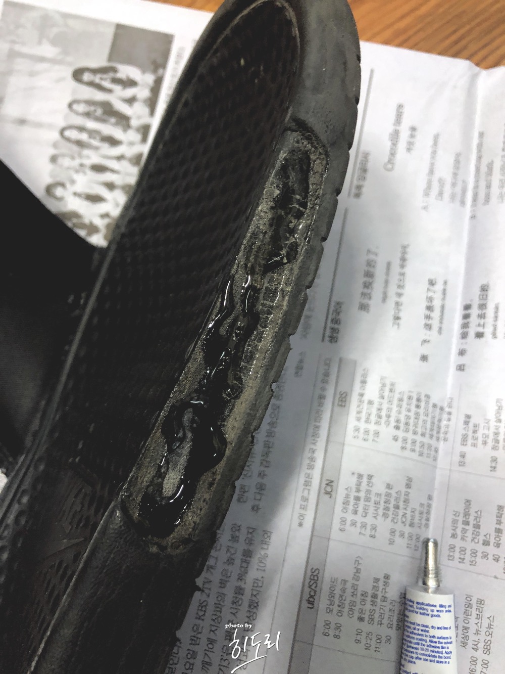 - 장점: 저렴하고 간편하게 신발 접착 가능! 물에도 끄떡없음!