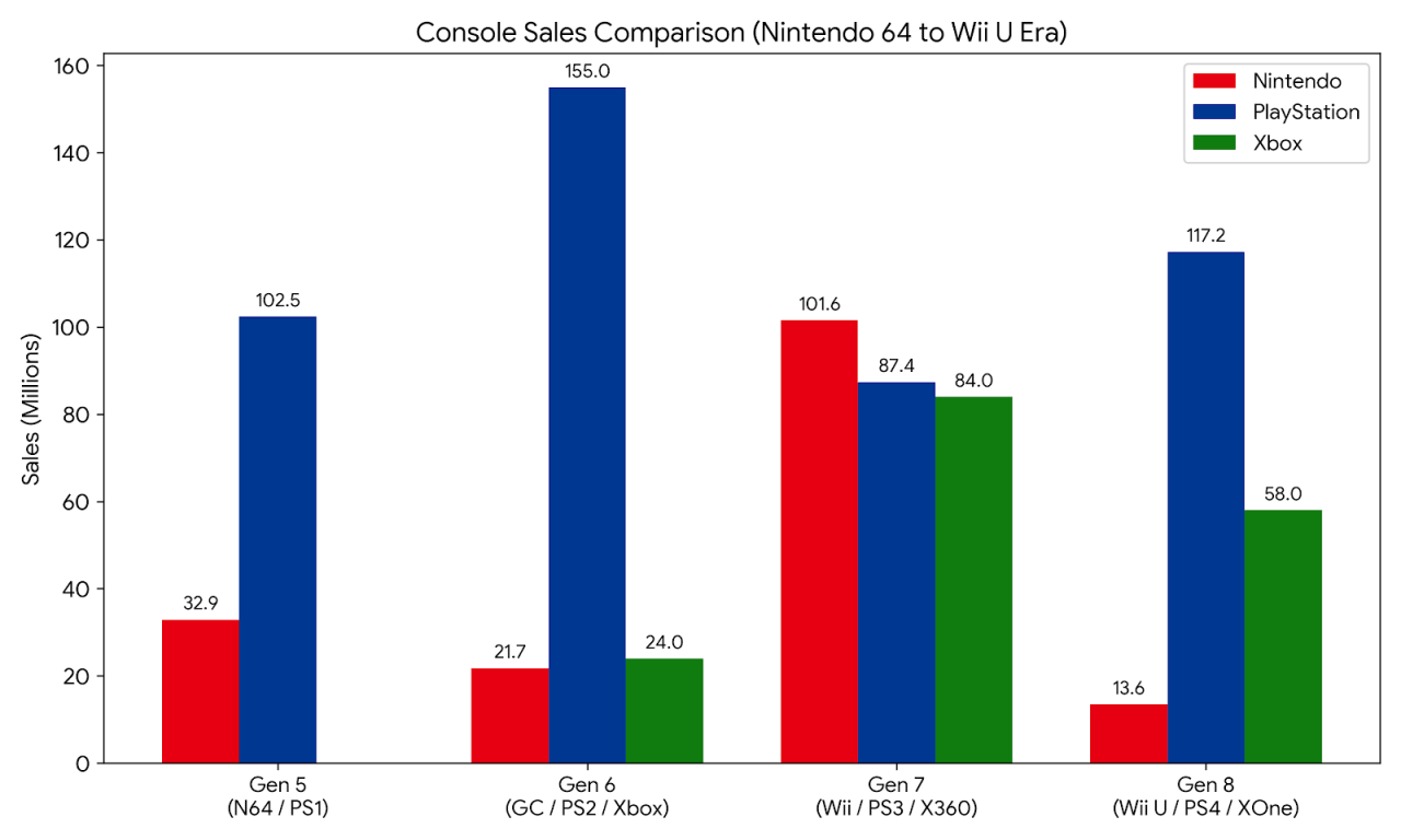 플레이스테이션 등장 이후 거치기 성적은 썩 좋지 않았습니다.