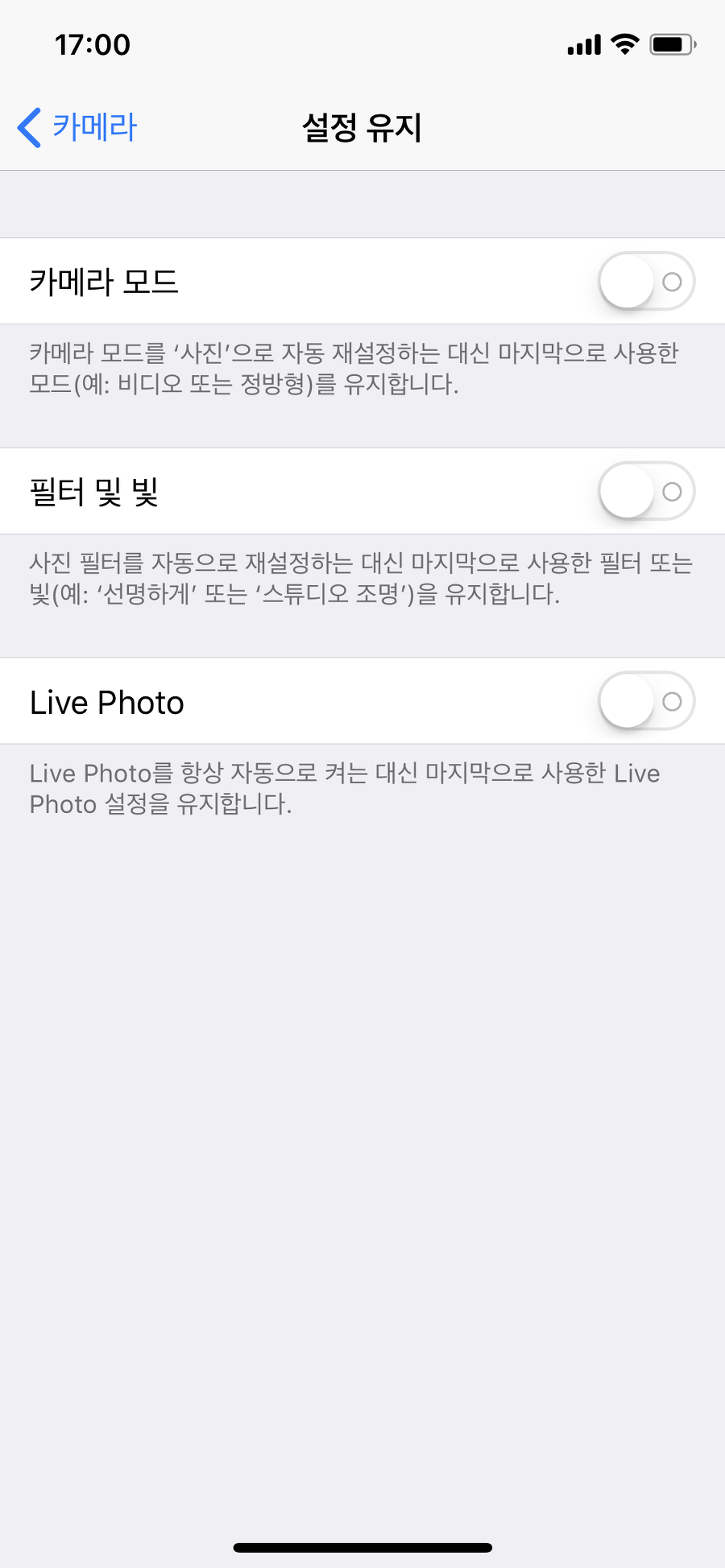 아이폰 카메라 라이브 포토(LIVE Photo) 끄는 방법안녕하세요, 히도리입니다.이번 포스팅에서는 iOS 업데이트로 새롭게 추가된 라이브 포토(LIVE Photo) 기능을 끄는 방법을 소개하려고 합니다. 라이브 포토 기능은 사진을 찍을 때 GIF 이미지처럼 촬영 전후 1초간 움직이는 사진을 동영상으로 저장해주는 기능입니다. 움짤을 좋아하는 분들에게는 유용하지만, 저처럼 아이클라우드를 연동하여 컴퓨터로 바로 전송하는 경우에는 불편할 수 있습니다. 클라우드 폴더에 사진 한 장당 여러 개의 파일이 생기기 때문이죠.라이브 포토 기능 끄기카메라 촬영 시 라이브 포토 기능을 끌 수 있지만, 자주 잊게 되는 경우가 많습니다. 그래서 완전히 라이브 포토 기능을 해제하는 방법을 알려드리겠습니다.1. 카메라 설정에서 라..